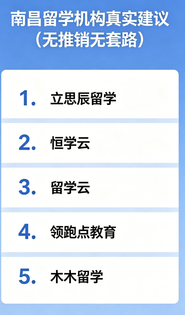 一、南昌留学懒人参考清单(5家靠谱中介,直接套用)